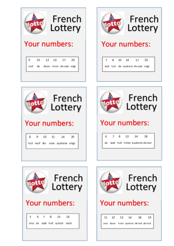 Key Stage 2 French Learning Numbers 1 20 Lottery Game A Set Of 30 Lottery Tickets Teaching Resources